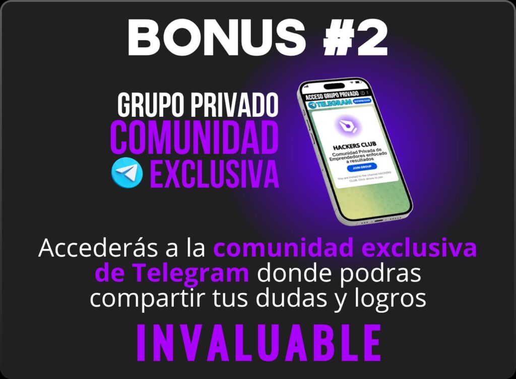 Después de inscribirte, recibirás un correo con el acceso a nuestra plataforma en Hotmart donde podrás ver todas las clases y recursos. Dentro, encontraras el link para que te unas a la comunidad exclusiva de Telegram.